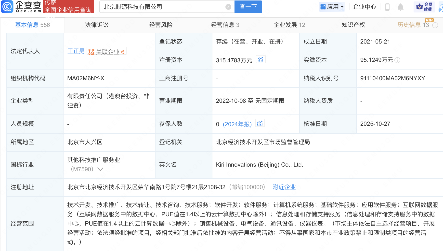 企查查APP显示,近日,麒砺创新关联公司北京麒砺科技有限公司发生工商变更,新增深圳哈勃科技投资合伙企业(有限合伙)为股东,同时注册资本增至315.48万元。企查查信息显示,该公司成立于2021年,法定代表人为王正男,经营范围包含:计算机系统服务;基础软件服务;应用软件服务等。公开信息显示,麒砺创新是一家3D扫描应用开发商,专注于研发低成本3D扫描重建技术,并开发消费级3D扫描应用。