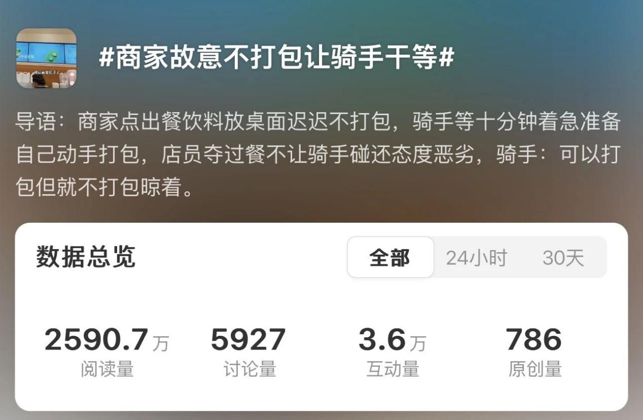 近日,#商家故意不打包让骑手干等#的话题登上了热搜。