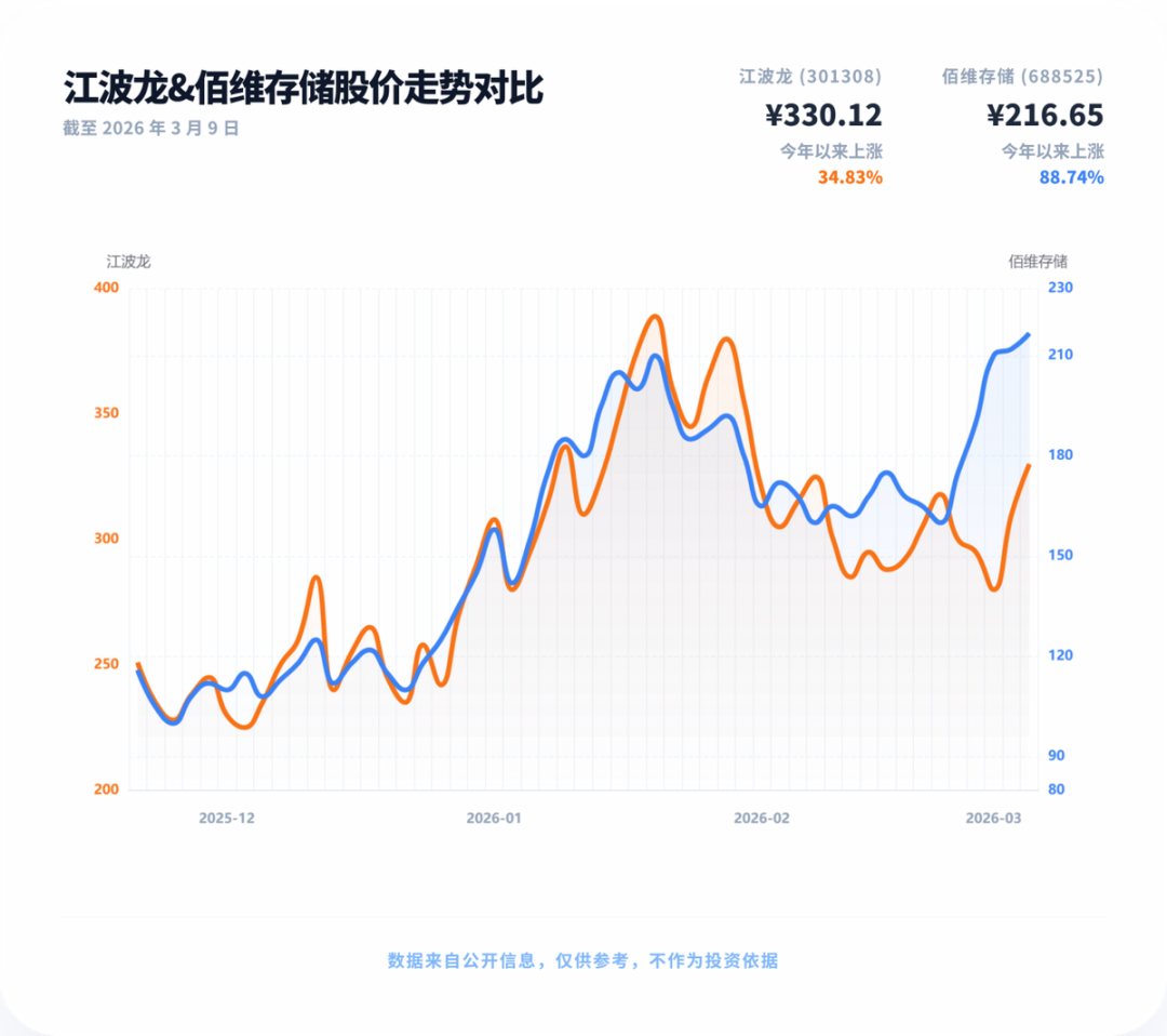 佰维存储、江波龙、兆易创新、北京君正……国内市场存储概念龙头企业几乎都是百元股,不过今天能够逆势大幅上涨的,仅有江波龙一家。有传言称其一季度业绩超过预期,也有人调侃:这是“波龙”蹭上了最近火热的OpenClaw“龙虾”概念。