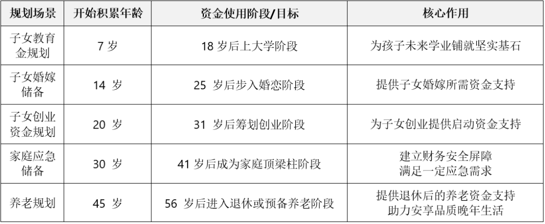 备注:本表为“小金罐”适配场景的参考示例,开始积累年龄与资金使用阶段可根据个人实际情况调整。