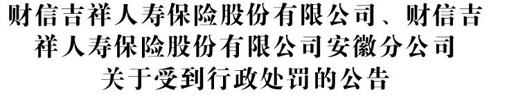 12月10日,财信吉祥人寿发布关于该公司以及安徽分公司受到行政处罚的公告。