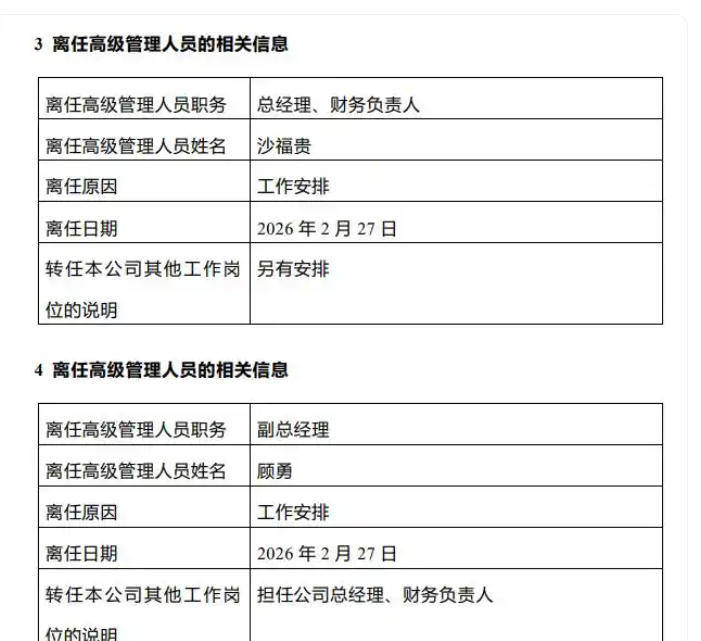 2月27日,东财基金管理有限公司(下称“东财基金”)发布公告称,总经理、财务负责人沙福贵因工作安排离任;副总经理顾勇因工作安排离任,转任公司总经理、财务负责人。