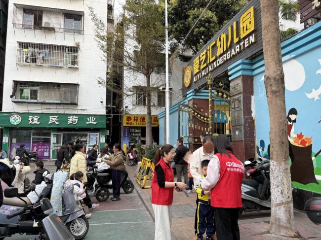 活动选择在幼儿园放学高峰时段开展,充分利用家长接送孩子的密集人流,扩大宣传覆盖面。志愿者们身着统一红色马甲,在社区文体广场设立宣传咨询台,通过悬挂主题横幅、摆放宣传展架、发放折页手册等形式,向社区居民普及金融安全知识,现场气氛热烈,群众参与积极。