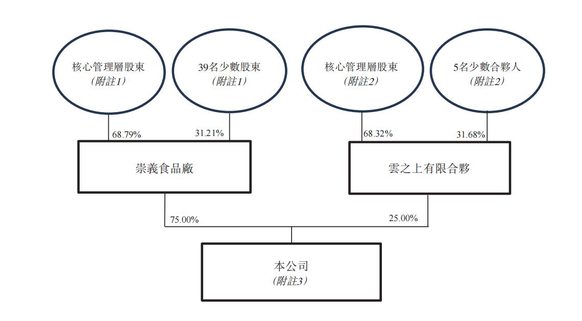从齐云山食品的股权结构来看,该公司现由崇义食品厂(持股75%)和云之上有限合伙(持股25%)共同持有。