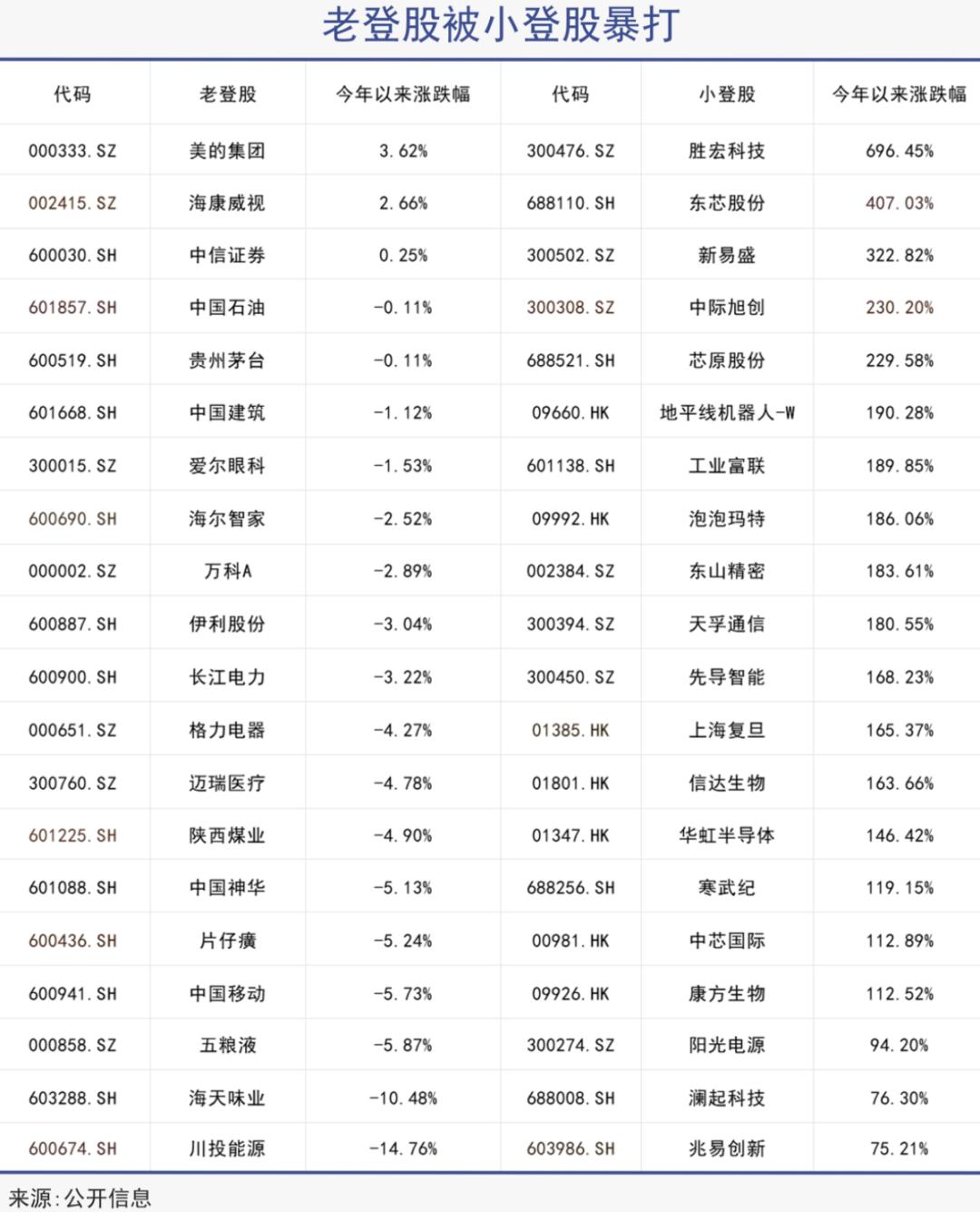 板块之间的分歧之严重已经前所未有。估值在高位的科技股持续强势,估值在地板上的蓝筹股、白马股反而跌得更惨。在指数看似平稳的表现之下,大约七成的个股股价横盘或下跌,“老登股”、“小登股”的区别已经符号化传播。