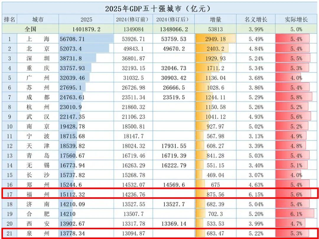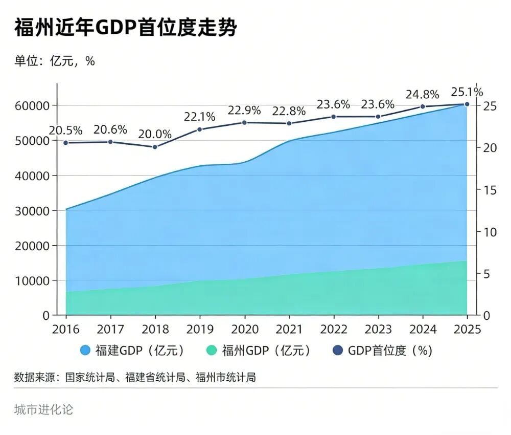 2020-2025年,福州的经济总量却以每年跨越一个千亿级台阶的速度迅速崛起。