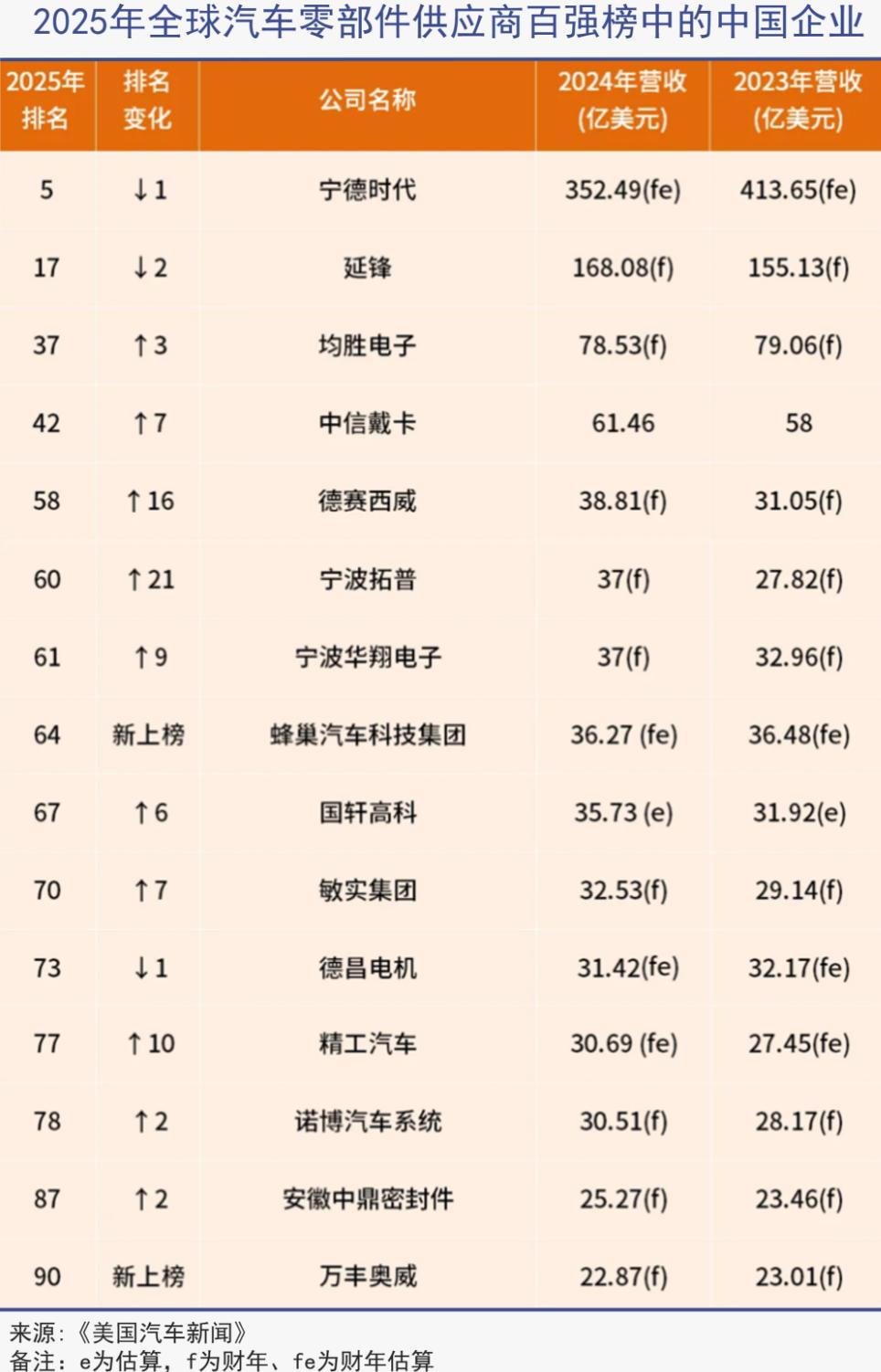 在日德享誉世界的汽车零部件行业,中国已经有15家企业入围百强榜,4家进入前50(宁德时代、延锋、均胜电子、中信戴卡),而且中国企业息税前利润率5.7%为全球最高,甩欧洲(3.6%)和韩国(3.4%)几条街。