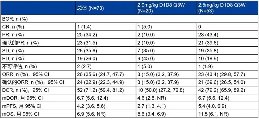 iza-bren能够取得这样的成绩并不让人意外,其实早在今年7月团队就在权威期刊《Nature Medicine》上发表了Ib期研究的优异数据。在82例ESCC患者中,共有73例可进行疗效评估,整体客观缓解率(ORR)为32.9%。其中,2.5mg/kg剂量组呈现出明显更优的治疗优势,ORR提升至39.6%,PFS为5.4个月,OS达到11.5个月。充分展现出iza-bren治疗晚期ESCC患者所表现出的抗肿瘤活性。
