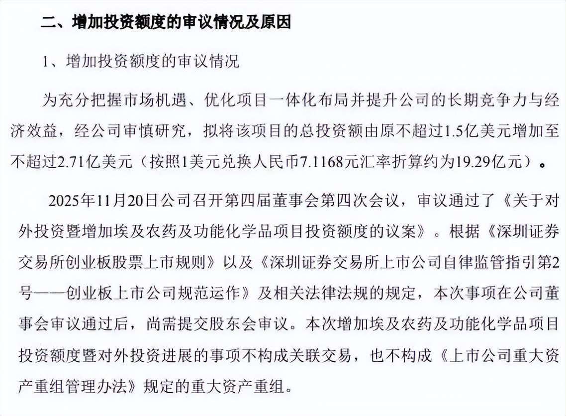 近期,泰禾股份在海外投资与国内募资项目上动作频频却争议不断,公司将埃及农药及功能化学品项目投资额从1.5亿美元,增长至2.71亿美元。